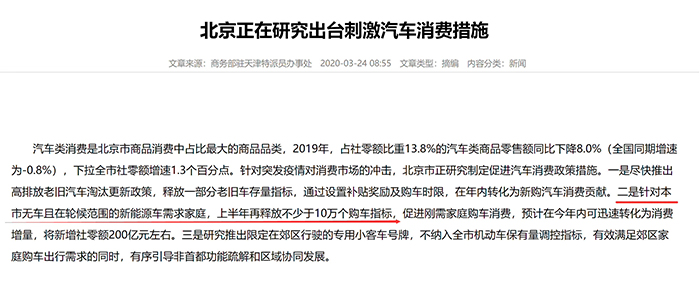 北京市正在研究制定促進汽車消費政策措施。
