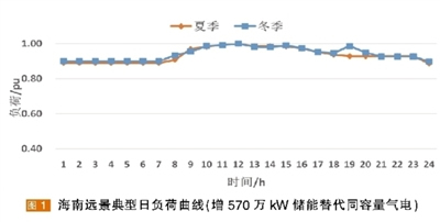 遠(yuǎn)景原始負(fù)荷曲線中夏季日最小負(fù)荷率為0.62,冬季日最小負(fù)荷率為0.46,日峰谷差較大。通過新增大規(guī)模儲能裝置替代同等功率氣電機(jī)組,在滿足電量總需求的前提下,通過用電負(fù)荷的削峰填谷,優(yōu)化負(fù)荷曲線。假定新增分布式儲能裝置的放電時(shí)間均為2小時(shí),放電深度100%。