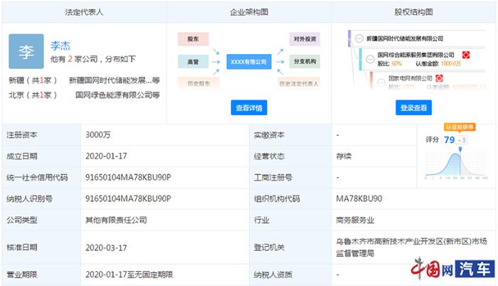 記者從天眼查看到,國(guó)網(wǎng)時(shí)代注冊(cè)資金為人民幣3000萬(wàn)元,其中國(guó)網(wǎng)綜能出資1800萬(wàn),占股60%,占據(jù)主導(dǎo)權(quán);寧德時(shí)代認(rèn)繳金額1200萬(wàn),占股40%。國(guó)網(wǎng)時(shí)代董事長(zhǎng)李杰、總經(jīng)理趙錦均來(lái)自國(guó)網(wǎng)綜能,其中李杰為國(guó)網(wǎng)綜能新能源事業(yè)部總經(jīng)理,趙錦為國(guó)網(wǎng)綜能新能源事業(yè)部市場(chǎng)總監(jiān),寧德時(shí)代儲(chǔ)能事業(yè)部總裁譚立斌出任董事。新公司總部位于新疆烏魯木齊高新技術(shù)產(chǎn)業(yè)開發(fā)區(qū),經(jīng)營(yíng)范圍:儲(chǔ)能項(xiàng)目的投資、建設(shè)、運(yùn)營(yíng)。
