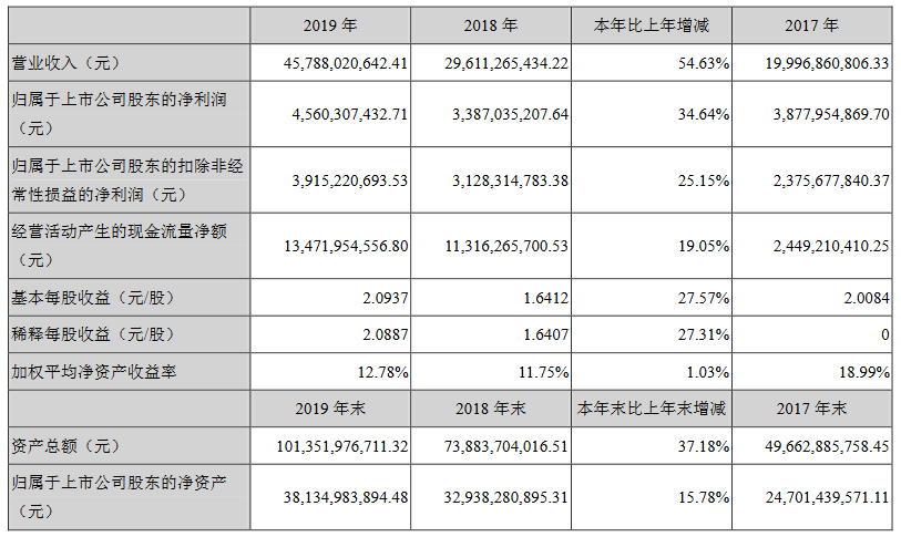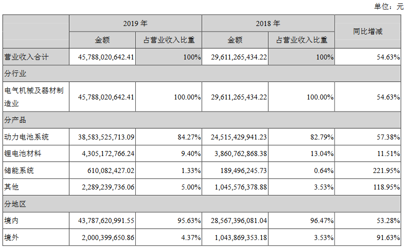 寧德時(shí)代發(fā)布2019年度報(bào)告,報(bào)告顯示,公司2019年?duì)I業(yè)收入457.88億,同比增長54.63%。凈利潤45.6億,同比增長34.64%。