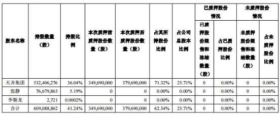 根據(jù)最新5月8日公司的公告顯示,控股股東成都天齊實業(yè)(集團)有限公司(下稱天齊集團)補充質(zhì)押3000萬股股份給國金證券(600109,股吧)和中泰證券。天齊集團共計質(zhì)押3.8億股股份,占公司總股本的25.71%,占其所持股份比例的71.32%。