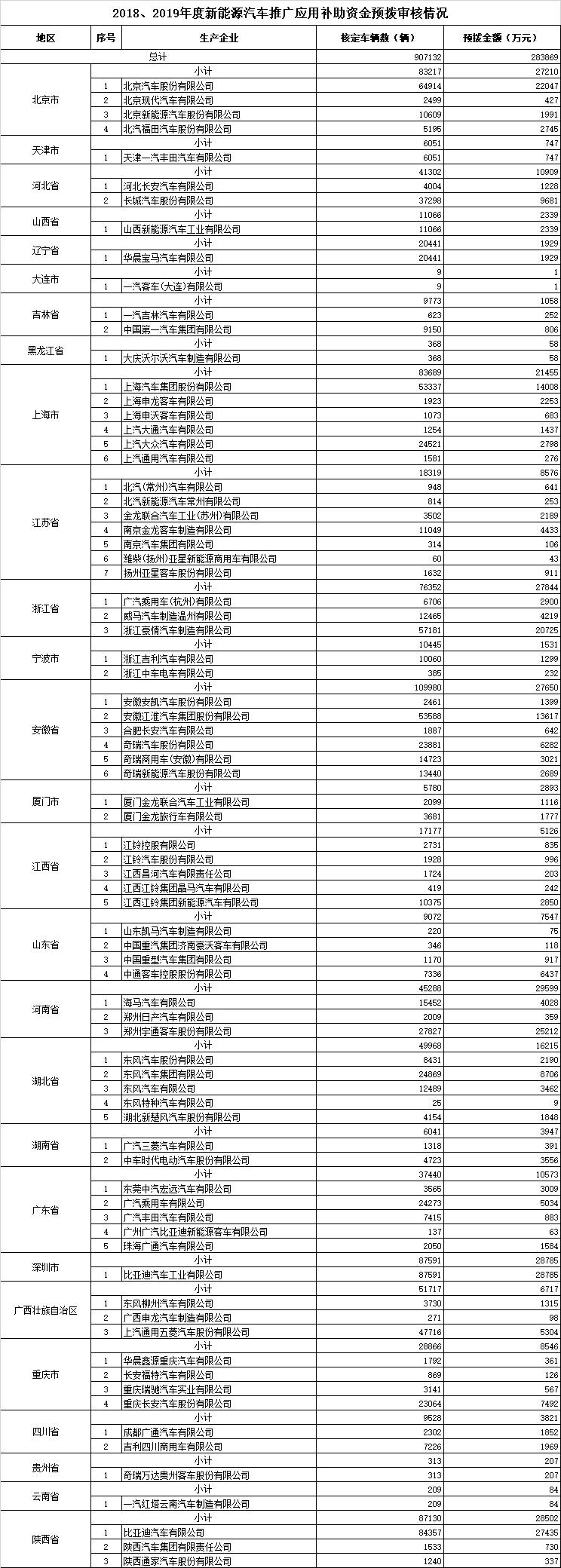 按照財(cái)政部、工業(yè)和信息化部、科技部、發(fā)展改革委《關(guān)于2016-2020年新能源汽車推廣應(yīng)用財(cái)政支持政策的通知》(財(cái)建〔2015〕134號(hào))、《關(guān)于2015年度新能源汽車推廣應(yīng)用補(bǔ)助資金清算工作的補(bǔ)充通知》(財(cái)辦建〔2016〕115號(hào))、《關(guān)于調(diào)整新能源汽車推廣應(yīng)用財(cái)政補(bǔ)貼政策的通知》(財(cái)建〔2016〕958號(hào))、《關(guān)于調(diào)整完善新能源汽車推廣應(yīng)用財(cái)政補(bǔ)貼政策的通知》(財(cái)建〔2018〕18號(hào))、《關(guān)于開展2018及以前年度新能源汽車推廣應(yīng)用補(bǔ)助資金清算的通知》(財(cái)辦建〔2019〕87號(hào))和《關(guān)于進(jìn)一步完善新能源汽車推廣應(yīng)用財(cái)政補(bǔ)貼政策的通知》(財(cái)建〔2019〕138號(hào))等文件要求,工業(yè)和信息化部裝備工業(yè)一司委托工業(yè)和信息化部通信清算中心,開展了2018年度、2016年及以前年度新能源汽車推廣應(yīng)用補(bǔ)助資金清算審核和2018年度、2019年度補(bǔ)助資金預(yù)撥審核工作。