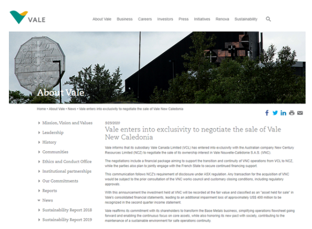 新世紀(jì)公司則表示,它將進(jìn)行盡職調(diào)查,收購(gòu)擁有和經(jīng)營(yíng)Goro鎳鈷礦的VNC。