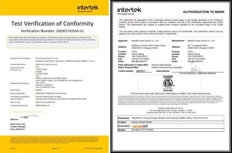為了配合項(xiàng)目的推進(jìn),南都電源MW級集裝箱式鋰電儲能系統(tǒng)申請并獲得UL9540和UL9540A認(rèn)證,標(biāo)志著南都儲能系統(tǒng)獲得全球儲能領(lǐng)先標(biāo)準(zhǔn)安全認(rèn)證認(rèn)可,打通了北美儲能市場的綠色通道。