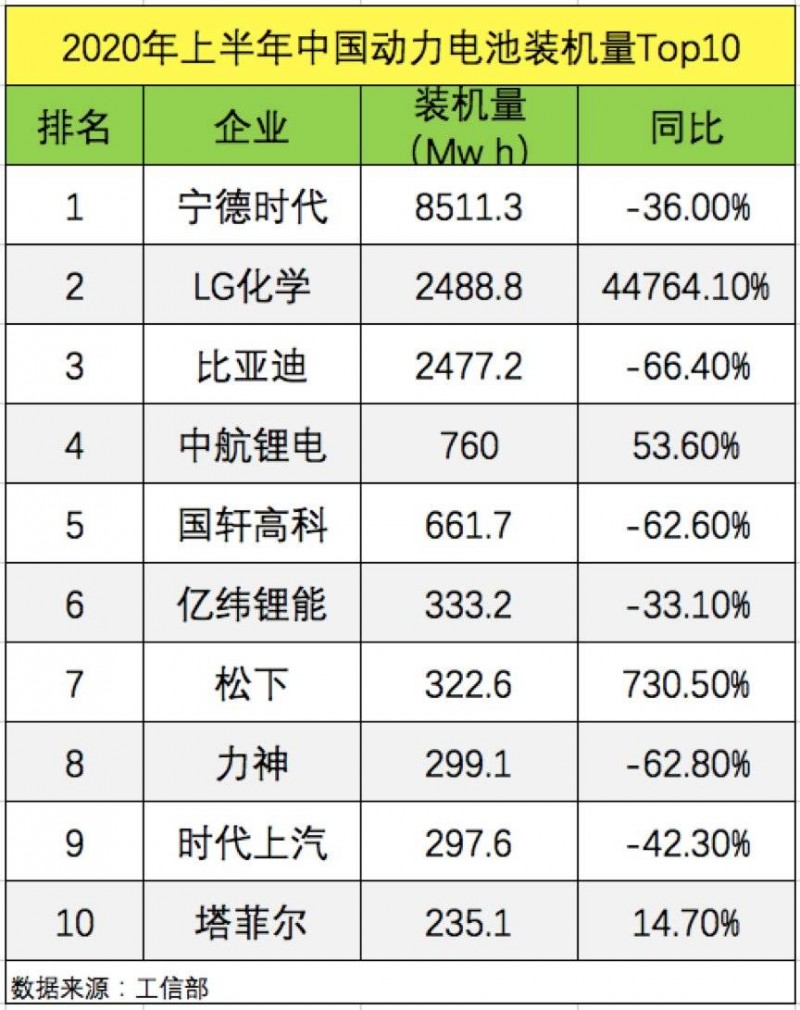值得注意的是,在裝機(jī)量前十的企業(yè)名單中,日韓動(dòng)力電池企業(yè)LG化學(xué)和松下赫然在列。尤其是LG化學(xué),以2.49Gwh的裝機(jī)量,同比增長(zhǎng)44764%,力壓比亞迪(2.48Gwh)位列國(guó)內(nèi)裝機(jī)量排名第二,國(guó)內(nèi)長(zhǎng)達(dá)數(shù)年的動(dòng)力電池一超(寧德時(shí)代)一強(qiáng)(比亞迪)格局,就此打破。