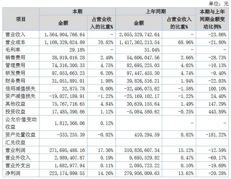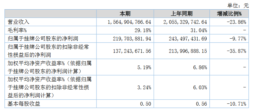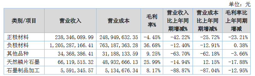 貝特瑞發(fā)布半年報,報告期內(nèi),公司實現(xiàn)營業(yè)收入 15.65 億元,同比下降 23.86%;其中,負(fù)極材料銷量 26,724 噸,實現(xiàn)營業(yè)收入 12.05 億元,正極材料銷量 4,680噸,實現(xiàn)營業(yè)收入 2.38 億元。公司實現(xiàn)利潤總額和凈利潤分別為 2.73 億元和 2.23 億元,同比分別下降 14.27%和 20.28%,實現(xiàn)歸母凈利潤 2.20 億元,同比下降 9.77%。
