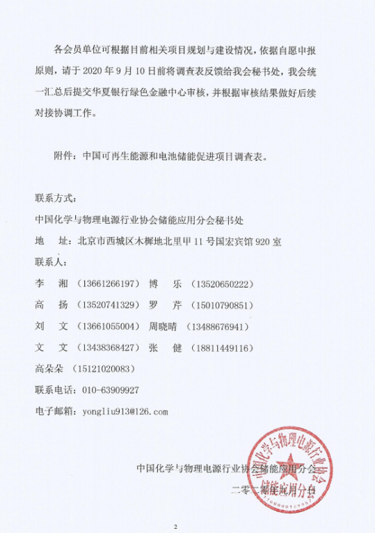 受世界銀行中國代表處及華夏銀行綠色金融中心委托,我會現(xiàn)對相關(guān)儲能項目建設(shè)情況做好前期調(diào)研工作,以便為該項目資金的逐步落地做好鋪墊。