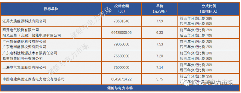 近日,招投標(biāo)網(wǎng)站發(fā)布了該項(xiàng)目的開標(biāo)結(jié)果。包括江蘇大族能源科技有限公司在內(nèi)的9家單位單獨(dú)或者以聯(lián)合體的形式提交了投標(biāo)文件。單位報(bào)價(jià)最低5.75元/Wh,最高7.59元/Wh。