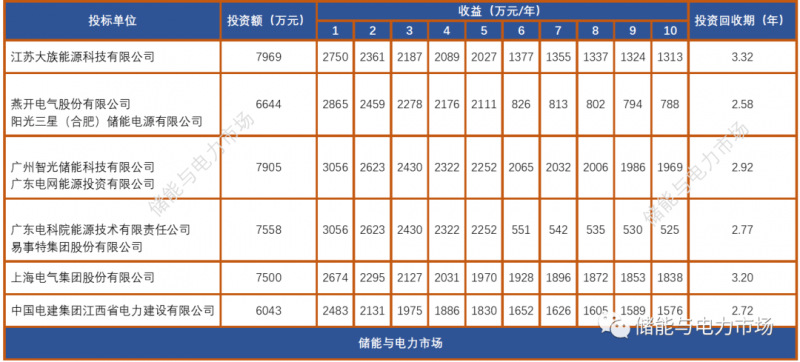 考慮利益分成,不考慮運(yùn)維、設(shè)備更換、稅收等其他條件,則按以上報(bào)價(jià)以及收益分成情況分析,項(xiàng)目回收期最短2.58年,最長3.32年。
