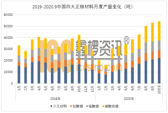 正極材料|9月國(guó)內(nèi)四大正極材料產(chǎn)量約為5.31萬噸