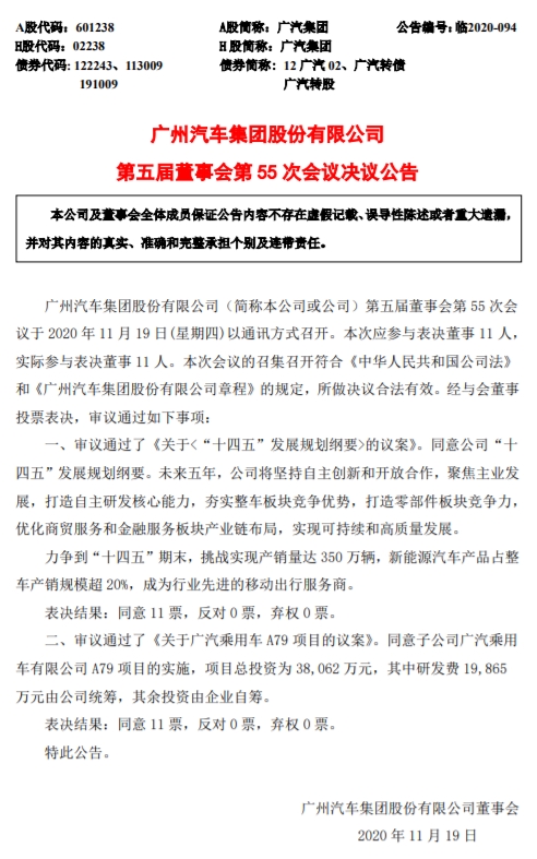 廣汽集團:力爭“十四五”期末新能源汽車產(chǎn)品占整車產(chǎn)銷規(guī)模超20%