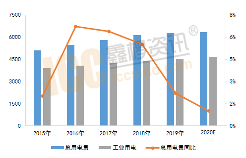 圖2:2015-2020年江蘇省用電量統(tǒng)計(億千瓦時)
