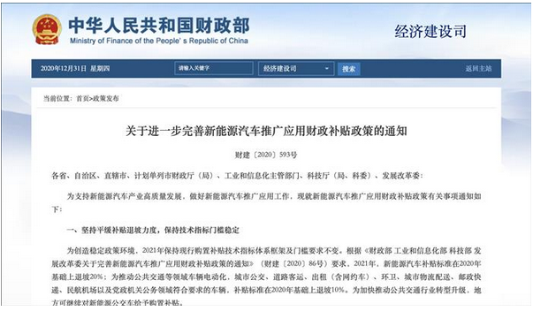 因此,為進(jìn)一步推動(dòng)新能源汽車(chē)產(chǎn)業(yè)健康有序發(fā)展,四部委于近期聯(lián)合印發(fā)了《通知》,進(jìn)一步明確了2021年新能源汽車(chē)推廣應(yīng)用財(cái)政補(bǔ)貼政策有關(guān)要求。