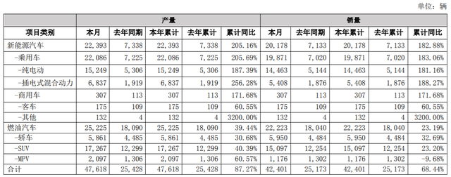 2021年2月3日晚間,比亞迪(002594)發(fā)布了2021年1月份的產(chǎn)銷(xiāo)快報(bào),數(shù)據(jù)顯示:比亞迪1月份銷(xiāo)售汽車(chē)42401輛,同比增長(zhǎng)68.44%;其中新能源車(chē)銷(xiāo)量20178輛 ,同比增長(zhǎng)182.88%。1月份生產(chǎn)汽車(chē)47618輛,同比增長(zhǎng)87.27% ;其中新能源車(chē)產(chǎn)量22393輛,同比增長(zhǎng) 205.16% 。