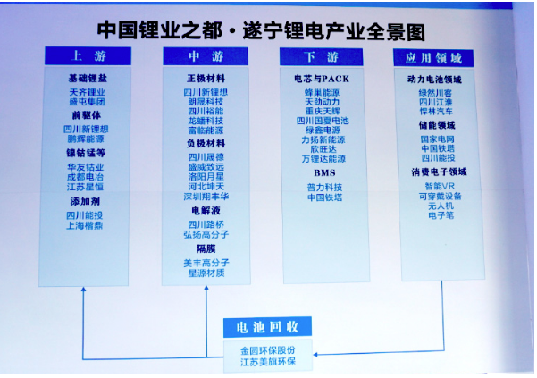 在發(fā)展思路上,遂寧堅持“高舉高打、做響品牌”理念,圍繞終端產(chǎn)品帶動,創(chuàng)新產(chǎn)業(yè)發(fā)展模式,構建“鋰礦-材料-電池-終端-回收”五位一體的鋰電全生命周期產(chǎn)業(yè)生態(tài)圈,通過鋰電新能源終端應用場景開發(fā)帶動前端材料產(chǎn)業(yè)發(fā)展,不斷拓展相關新材料領域,加速提升產(chǎn)業(yè)影響力。