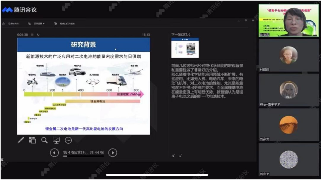 中科院蘇州納米所沈炎賓研究員主要介紹了碳鋰復(fù)合負(fù)極材料的研究進(jìn)展。她認(rèn)為金屬鋰電池在能量密度上有明顯優(yōu)勢(shì),被普遍看作是鋰離子電池之后的新一代電池技術(shù)。然而,金屬鋰極易與空氣和電解質(zhì)發(fā)生反應(yīng),且鋰沉積易產(chǎn)生枝晶并形成“死鋰”,影響電池的循環(huán)壽命和安全性,制約其產(chǎn)業(yè)化應(yīng)用。近幾年中科院蘇州納米所利用碳材料的親鋰性構(gòu)建了富含鋰沉積位點(diǎn)的微球型金屬鋰-碳(Li-C)復(fù)合材料,有效抑制了鋰枝晶生長(zhǎng)和“死鋰”形成。最后沈炎賓研究員詳細(xì)介紹了鋰碳負(fù)極補(bǔ)鋰技術(shù)及應(yīng)用。