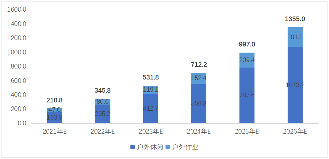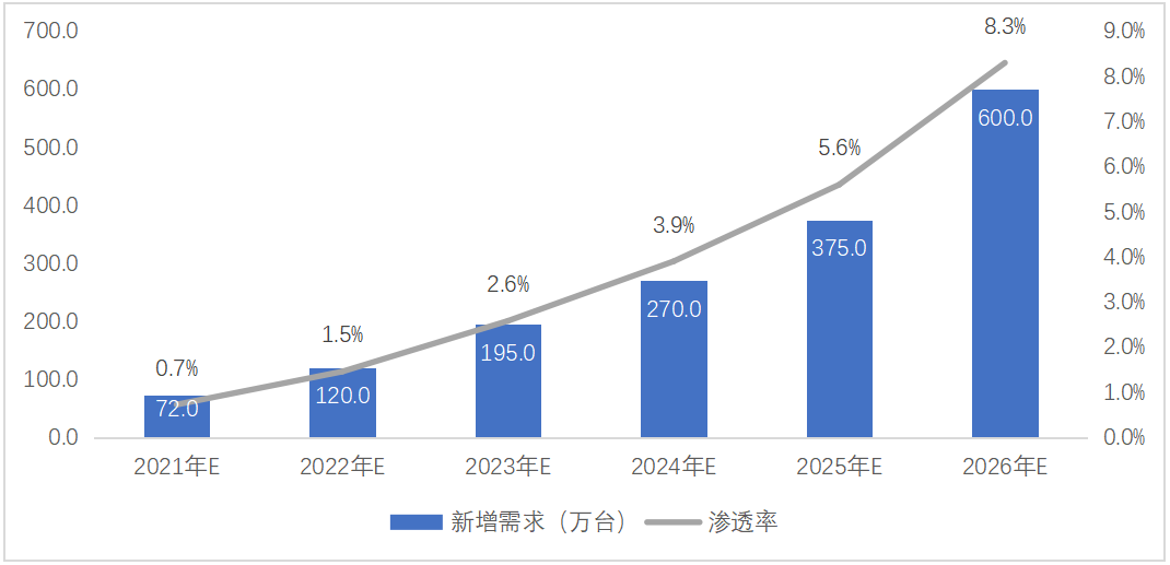 圖 22 2021-2026年戶外活動(dòng)領(lǐng)域新增需求預(yù)測:萬臺(tái)