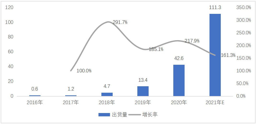 圖 10 2016-2021年全球便攜式儲(chǔ)能出貨量:萬臺(tái)