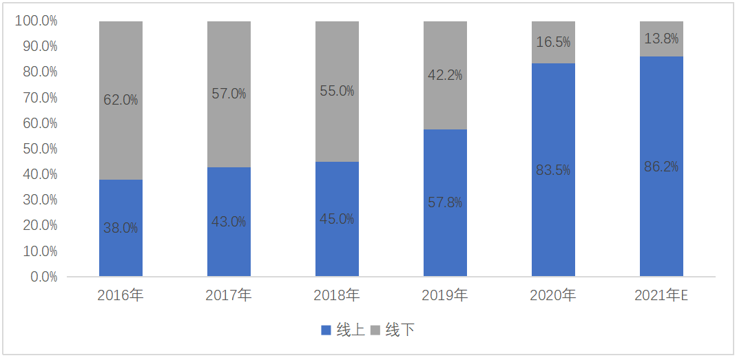 圖 18 2016-2021年不同銷售渠道份額變化趨勢