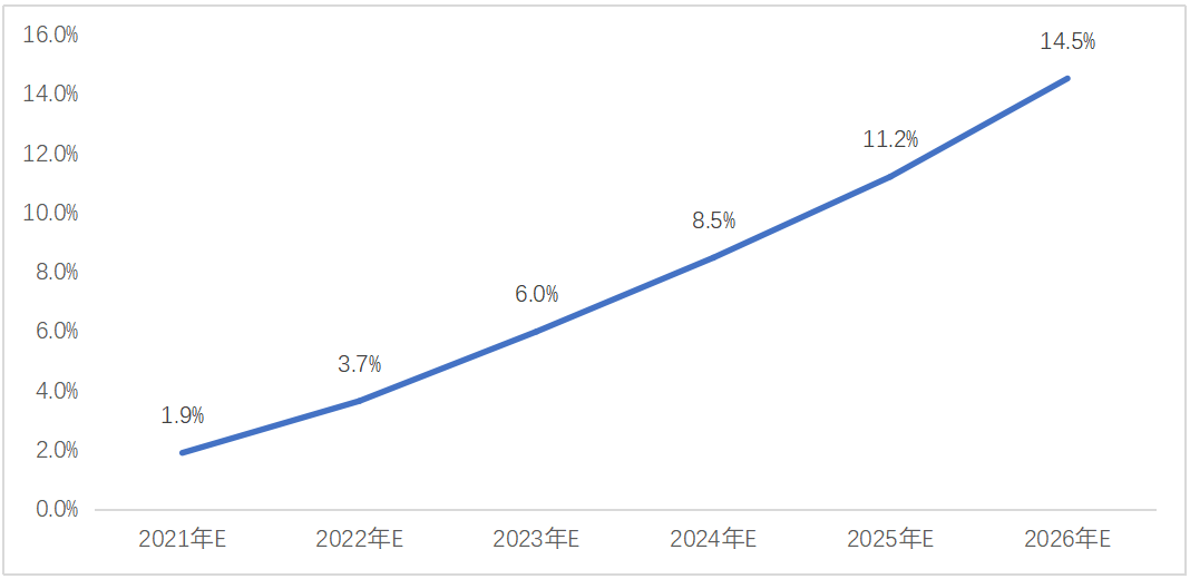 2021年,全球應(yīng)急領(lǐng)域需求的總體家庭數(shù)量約為11000萬戶,市場滲透率僅3%,預(yù)計(jì)到2026年,總數(shù)量將達(dá)到14000萬戶,按照便攜式儲(chǔ)能設(shè)備生命周期為3年計(jì)算,應(yīng)急領(lǐng)域市場滲透率可以達(dá)到19.4%。