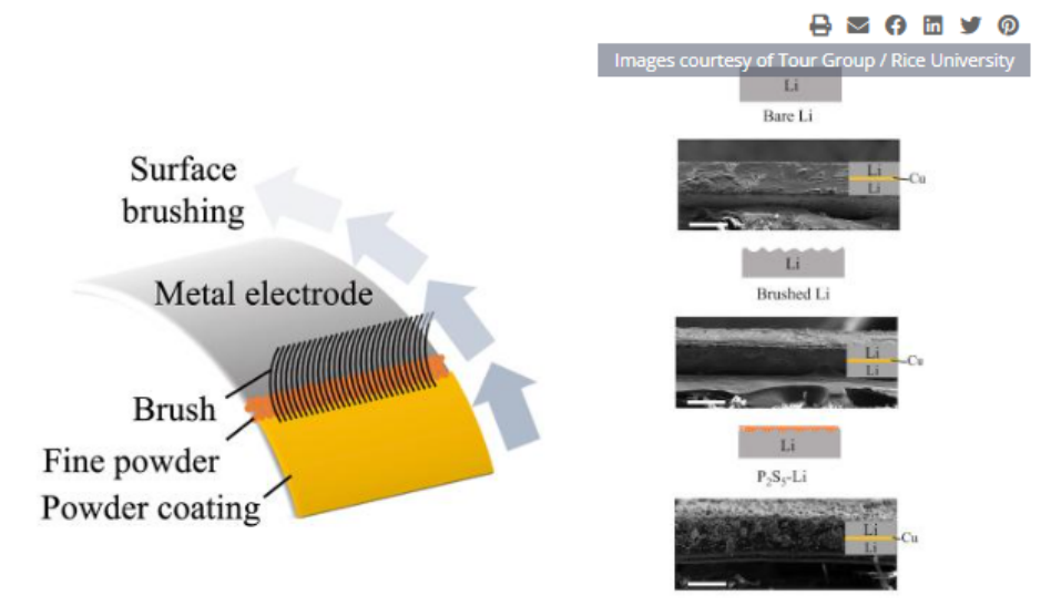 涂刷的過程首先涉及一層表面層,以賦予陽極紋理,然后再涂刷一層粉末,在電極頂部形成一層細(xì)膜,與金屬鋰發(fā)生反應(yīng),形成固體鈍化層。