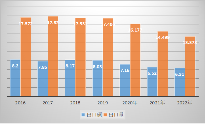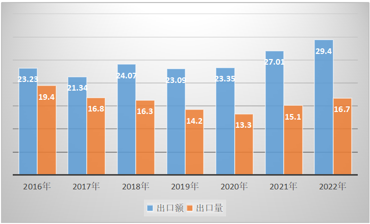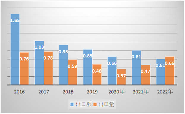 1、2022年鎳鎘蓄電池出口量為0.66億只,2021年出口量為0.47億只,同比上漲了40.43%。2022年鎳鎘蓄電池出口額為0.61億美元,2021年出口額為0.81億美元,同比減少了24.69%。