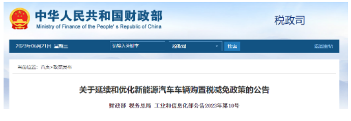據(jù)財政部網(wǎng)站,為支持新能源汽車產(chǎn)業(yè)發(fā)展,促進汽車消費,財政部、 稅務總局 、工業(yè)和信息化部就延續(xù)和優(yōu)化新能源汽車車輛購置稅減免政策做出公告:對購置日期在2024年1月1日至2025年12月31日期間的新能源汽車免征車輛購置稅。
