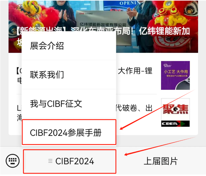 可通過CIBF官方微信公眾號(hào)“中國(guó)國(guó)際電池展”下方菜單“CIBF2024”下載。如下圖所示。