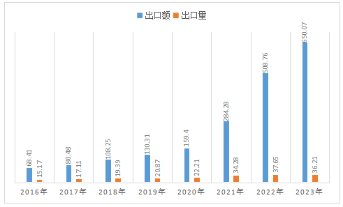 四、2016-2023年中國(guó)各種電池產(chǎn)品出口額、出口量及變化趨勢(shì)(出口額單位:億美元;出口量單位:億個(gè))