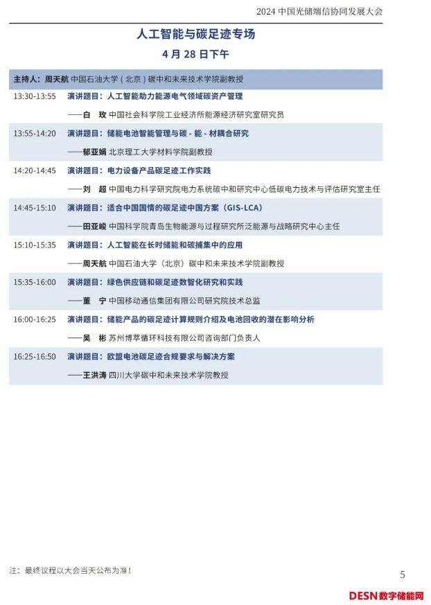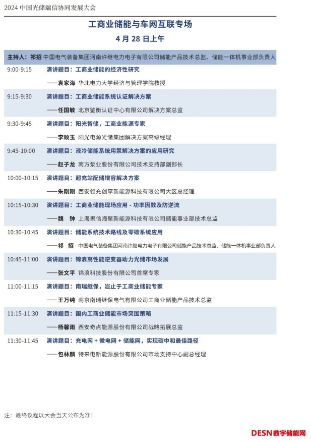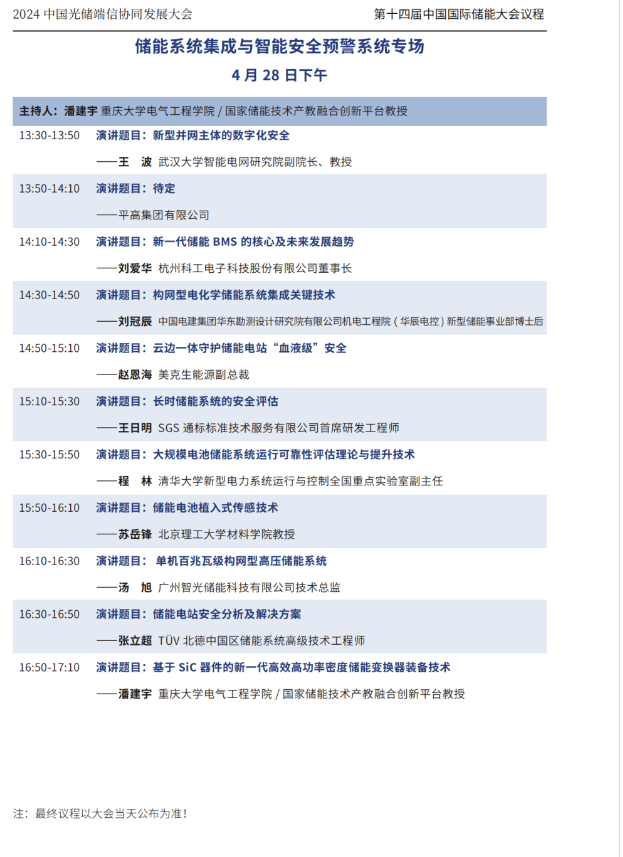 本屆大會將安排:大會開幕式暨碳達峰高峰論壇、工商業(yè)儲能與車網(wǎng)互聯(lián)專場、光儲氫協(xié)同發(fā)展專場、儲能系統(tǒng)集成與智能安全預(yù)警系統(tǒng)專場、人工智能與碳足跡專場等五個專場論壇。