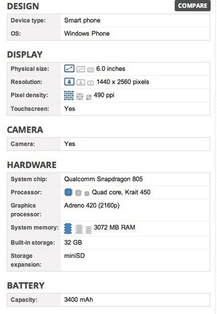 據(jù)悉,Lumia1525將采用6英寸2K級(jí)別高清屏幕,運(yùn)行驍龍805處理器,內(nèi)置3GB系統(tǒng)內(nèi)存、32GB機(jī)身存儲(chǔ),支持micro SD卡擴(kuò)展,電池容量為3400mAh。另外還值得期待的是其攝像頭將有所提升,有可能最高達(dá)到3000萬(wàn)像素,也可能是2500萬(wàn)像素。