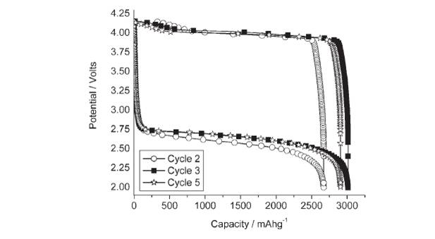 按第一個反應計算,電池開路電壓為2.91 V,理論能量密度為5200 Wh/kg,而在實際應用中,氧氣由外界環(huán)境提供,因此排除氧氣后的能量密度達到驚人的11140 Wh/kg,高出現(xiàn)有電池體系1-2個數(shù)量級,在軍用和民用的高能量密度領域中具有重要的應用前景。
