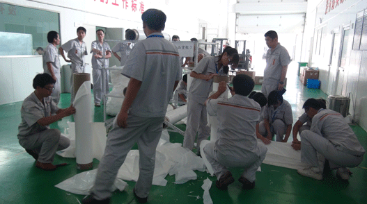 2014年7月11日河北金力新能源中層管理人員、部長(zhǎng)以上管理人員、品保人員等在副總經(jīng)理饒俊杰、隔膜事業(yè)部副總徐鋒的帶領(lǐng)下,在隔膜事業(yè)部進(jìn)行B品隔膜的報(bào)廢處理。