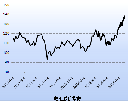 4日電池股價(jià)指數(shù)收138.13,環(huán)比上漲1.85%。今日指數(shù)平開(kāi)一路走高,強(qiáng)勢(shì)收漲,其中拓邦股份因半年報(bào)表現(xiàn)搶眼出現(xiàn)漲停。金瑞科技半年報(bào)顯示其營(yíng)收同比大增30%,但凈利潤(rùn)卻下滑厲害,主因公司加大了對(duì)新能源汽車(chē)產(chǎn)業(yè)的投資力度。