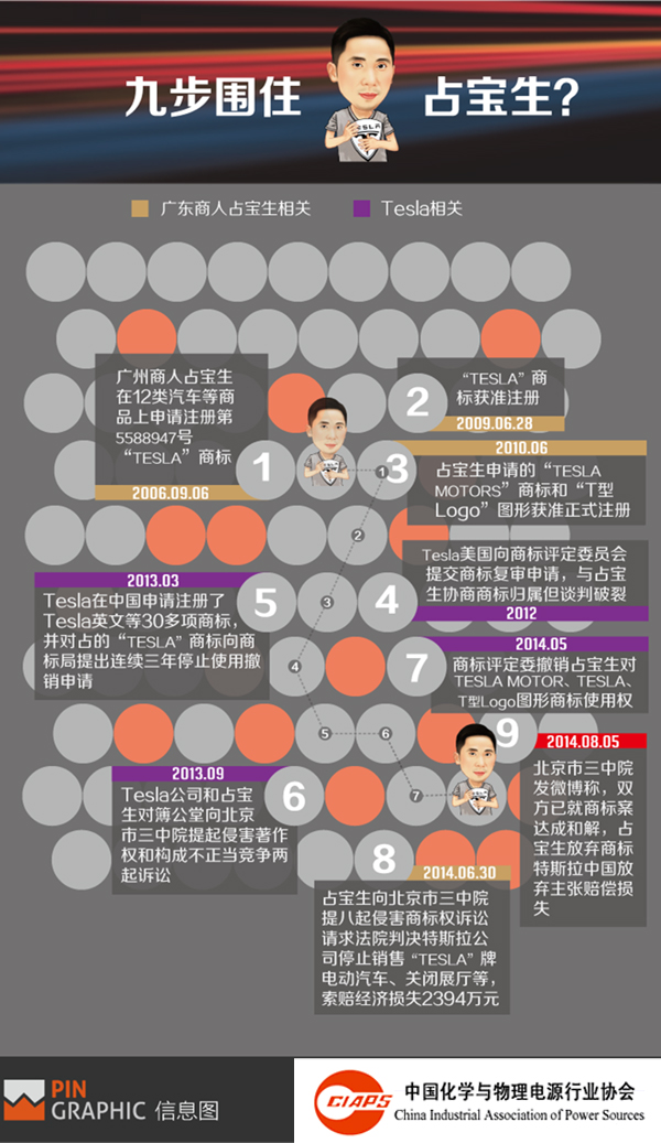 2011年以來,特斯拉一直竭力解決它在中國的商標權問題。而在經過起訴、庭審等一系列拉鋸戰(zhàn)后,特斯拉終于贏得了與占寶生關于商標、著作權、不正當競爭等一系列知識產權的案件。PingWest的信息圖帶你回顧,特斯拉是如何一步步圍住中國商人的。