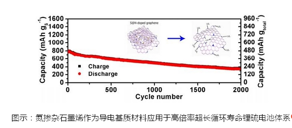 近幾年,研究人員嘗試設(shè)計(jì)各式新穎納米結(jié)構(gòu)的硫正極材料以改進(jìn)其電池性能,其中,石墨烯由于其獨(dú)特的二維結(jié)構(gòu),具有比表面積高、導(dǎo)電性能優(yōu)異、結(jié)構(gòu)穩(wěn)定等優(yōu)點(diǎn),極具潛力,可作為導(dǎo)電基質(zhì)應(yīng)用于鋰硫電池體系。
