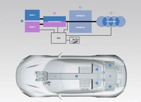 同時(shí),液流電池因?yàn)闆]有固定形狀,(罐子是什么形狀都可以)易于做整車的重心布局,可以讓車最大的重量位于汽車的中軸線,重心居中,這對(duì)汽車的操控很有好處。用在超跑上更是如魚得水。