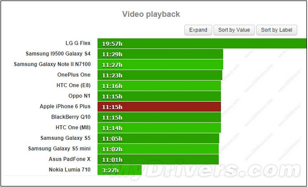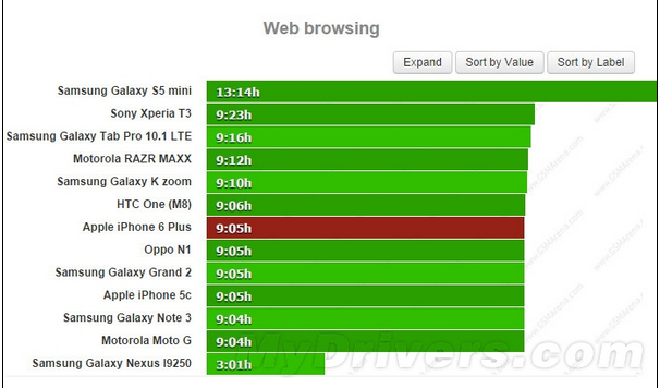 另外gsmarena表示在其大屏智能手機續(xù)航數(shù)據(jù)庫中,iPhone 6 Plus的續(xù)航表現(xiàn)可以排名前十。