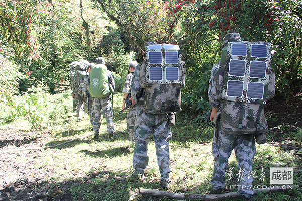 “分隊已到達(dá)1號點位,情況正常。”到達(dá)預(yù)定點位后,通信兵焦海峰打開電臺,向指揮部報告巡邏情況。記者注意到,與電臺相連的一塊粘有6塊黑色單晶電池片的迷彩帆布。焦海峰介紹說,這是高原邊防巡邏野營裝備中的便攜式太陽能發(fā) 電器,折疊后長寬18厘米,厚度不超過3厘米,天晴時將其掛在單兵背囊上就可為裝備供電,額定功率達(dá)到20W,可以滿足巡邏電臺、“北斗一號”手持型用戶 機(jī)等便攜式通信裝備的用電需求。該套裝備還加入了普通手電筒大小的單兵步行發(fā)電器,官兵行進(jìn)時帶動掛在身上的發(fā)電器晃動完成發(fā)電,保證陰雨天也有電可用。 官兵巡邏從此不用再攜帶傳統(tǒng)發(fā)電機(jī)和各式充電器,此一項就為巡邏分隊減輕負(fù)重20多公斤。