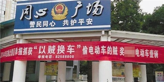 掛在路北街道一些主要道路上的橫幅,落款為路北派出所?,F(xiàn)在市面上,一輛品牌電動車的價格要2000多元。舉報或者抓賊,就能拿到一輛電動車?一開始,有市民不相信,打電話到派出所詢問,沒想到是真的。